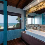La Efharis Beachfront Villa cuenta con un balcón y una zona de estar y ofrece a sus huéspedes comodidades como servicio de planchado y climatizador y elementos interiores, como sofá y escritorio. Las habitaciones disponen de TV de pantalla plana con canales vía satélite y televisión con múltiples canales, chimenea. Los cuartos de baño disponen de inodoro separado, bañera y ducha, secador de pelo y toallas.